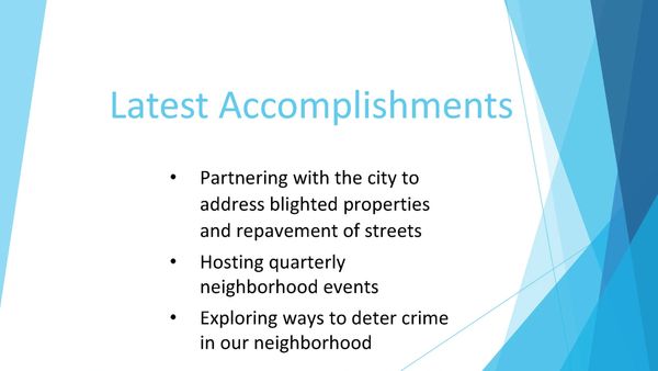 Please review the notes under the "MEETING" tab above concerning Crime and Improvement Discussion to stay informed.